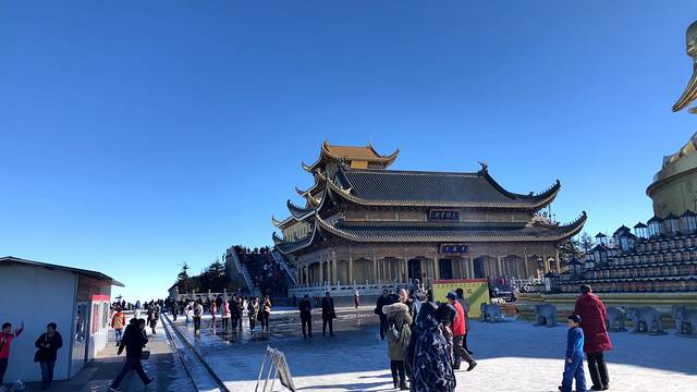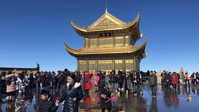 爬到了金顶,心情还是非常的愉悦的,整个山顶真的可以叫金碧辉煌了