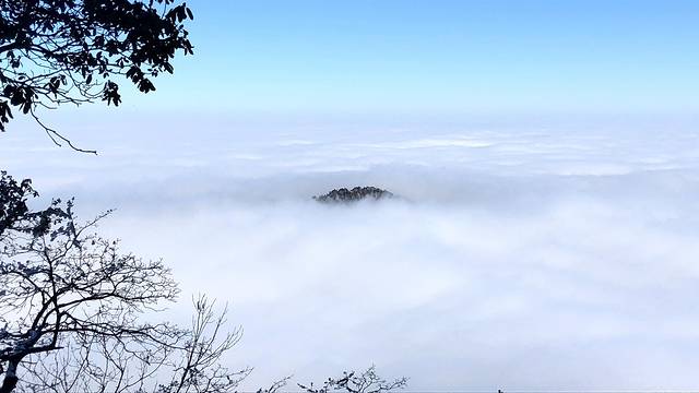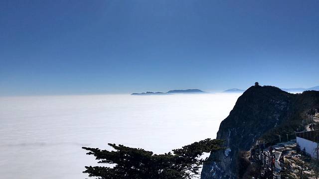 山尖在云海下,忽闪忽现,大家都充满期待。我想这番景色,也便只有峨眉才有