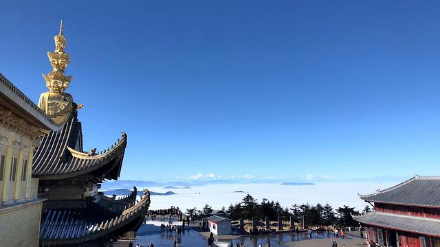 从金顶的最高殿向下看,你能发现自己已经在云巅至上了
