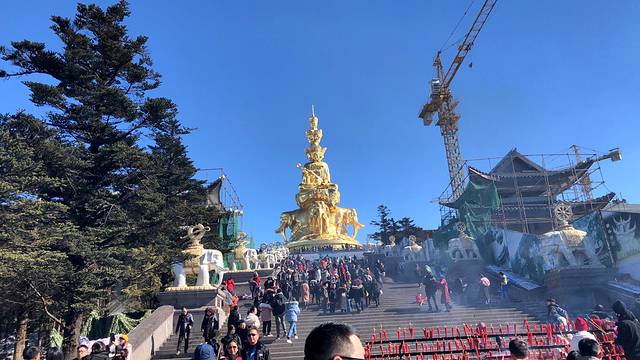 满心期待的来到峨眉金顶,可是却看到普贤菩萨两旁的佛殿真在整修