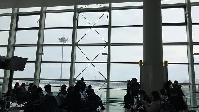 我很简单的带个包就出行了,可是同行的小伙伴偏偏带个行李箱,站在这里等他好了。