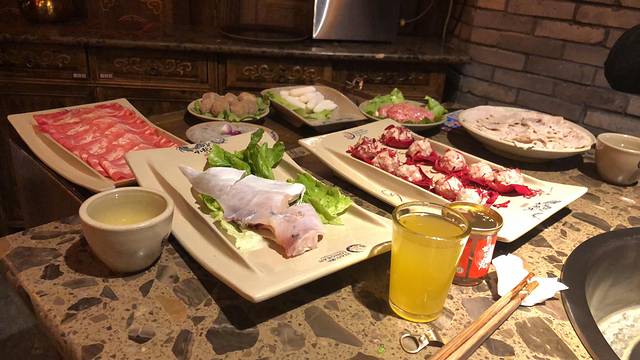 开口吃鱼片的时候就遭到鱼刺的攻击,被卡在喉咙里,那叫一个愤怒,我第一顿饭怎么可以这么不顺遂,咽不下又拿不出,火起来直接跑去洗手间使劲的抠,最终喉咙出血,依然拿出鱼刺,跟鱼刺赌气,喉咙留着血吃完,哈哈哈哈哈哈,至于火锅好吃与否,我觉得还凑合。