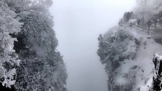 白茫茫一片,已经看不到绿色的景向,但是峨眉的秀丽,并没有被掩盖。