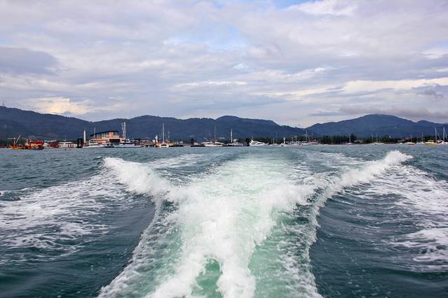 快艇从查龙码头到皇帝岛的PATOK海滩总共30分钟,速度很快,船也比较平稳。