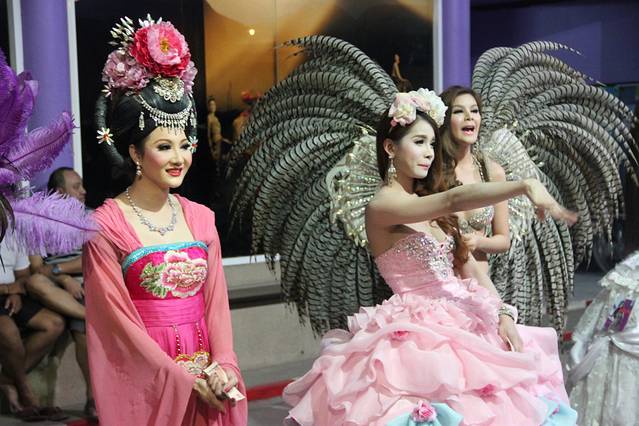 演出结束之后,所有参演的人妖们都会从后台去露天站成一排,招揽客人合影索要小费。100b每人,合人民币20块钱。想想人妖们也够不容易的,除了在舞台上光鲜亮丽的那一刻,生活中大概还是蛮艰辛吧。