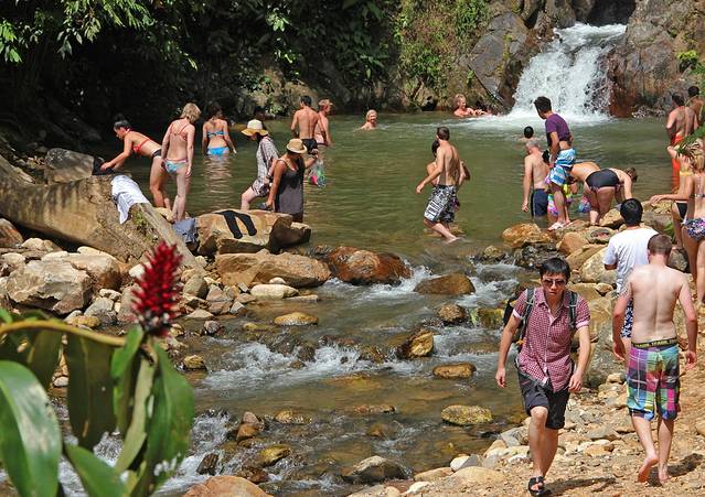 五公里的路程说长不长,说短不短。在一路剧烈颠簸、尖叫、大笑中,很快接近尾声。在漂流结束的时候,小黑们示意我们如果愿意,可以跳下船游泳。很多欧美人跳下去了,而我是被另一条船的小黑生生拽到了河里。毫无防备……很快又把我拉上船,问我OK?感觉呢,就是过瘾!