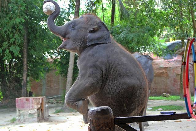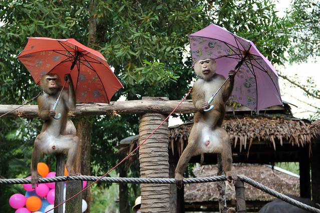 整个过程有点像马戏团的感觉,大象被指挥着做出各种动作,观众们看着开心,但想想总觉得对动物来讲太残忍了。猴子表演也类似,没什么新花样。