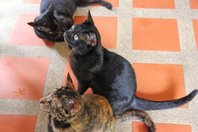 这里的流浪猫。一吃饭就会在桌子下面叫,等你喂食