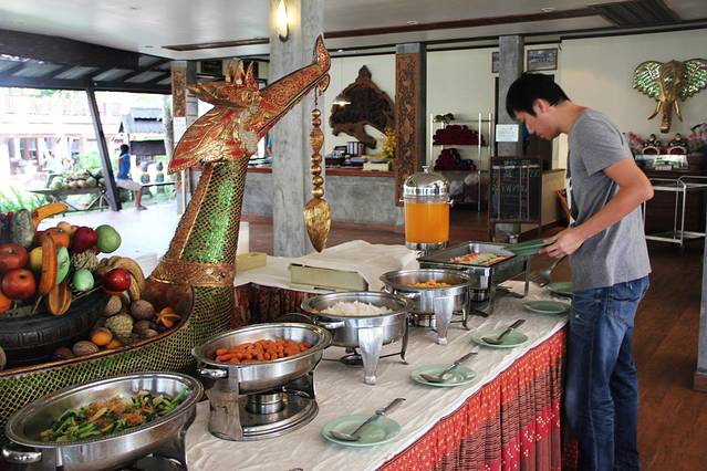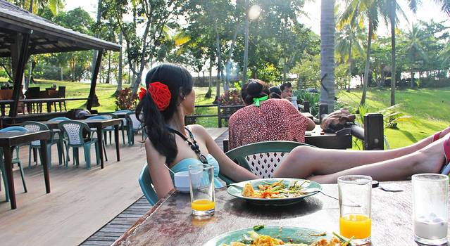 在这里浮潜结束后,我们前往Banraya酒店用午餐。正式吃饭是已经是下午一点多了。这里的午餐还可以,安排好六个人一桌。进餐厅前每人一杯果汁,很好喝。吃完饭,是自由活动时间。我们在前台办好check in,入住小木屋。