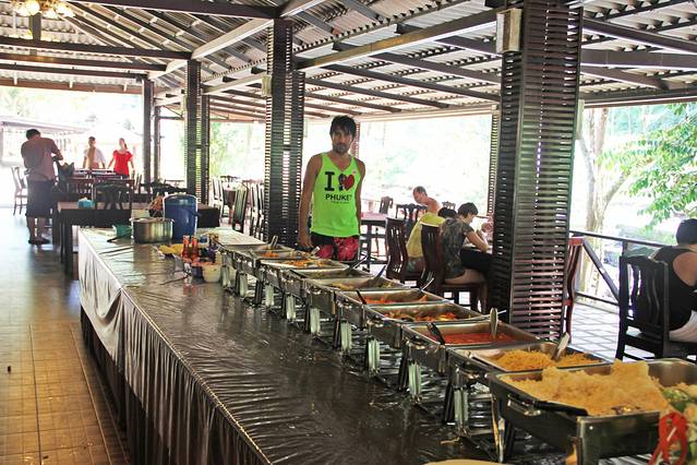 穿着一身湿透的衣服上了岸,简单收拾了下,EM示意我们可以用午餐了。就在攀牙湾漂流区域的旁边,露天的自助午餐。在这风景壮丽的地方用餐心情也格外愉悦,饱餐后,就在周围拍拍照片啦。