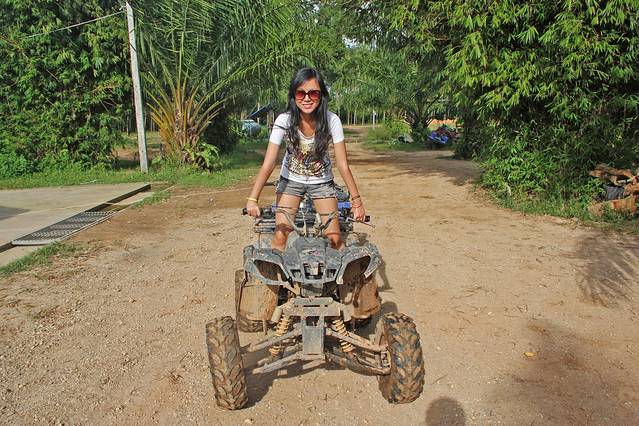接下来又开车到另外一个地方骑ATV,是这次一日游的最后一个项目。看起来很好操控的沙滩车,开起来简直太痛苦。车把很沉,马力很足,路很颠簸,一路开到树上好几次,被领路的小黑救了好几回。这个项目对我来讲没什么乐趣……