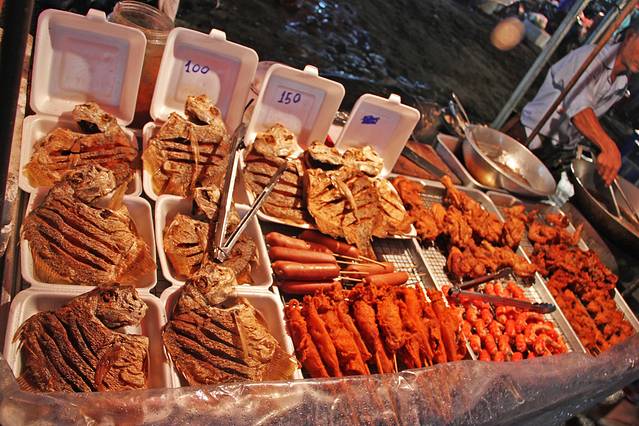 酒店往芭东海滩走的路上经过芭东夜市,夜市只有周三、周五、周日开放,相当热闹,大概有几百个摊位吧,小吃、水果、服装、饰品,应有尽有,价格也不贵。