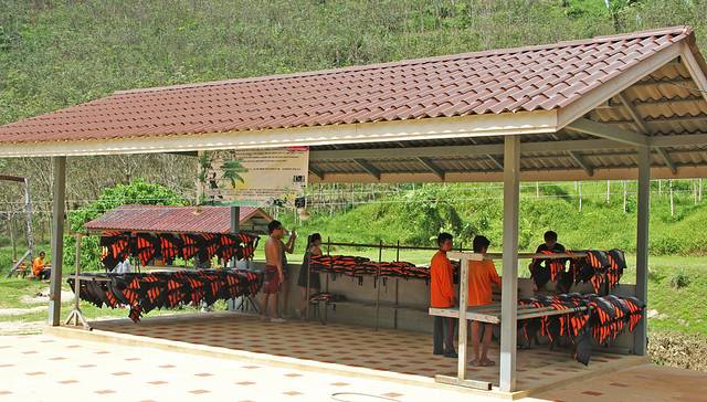 这里山清水秀,热带雨林的风情一览无余,大晴天太阳晒的狠,一定要注意防晒工作。貌似我们所在的漂流组织叫做safari,漂流之前要把随身的所有物品锁进柜子里,不能带相机手机拍照,很是遗憾。不过后面就明白为什么了。漂流船一艘船坐四个人,船头船尾分别坐着一个小黑。上船前要穿好救生衣,戴好头盔。