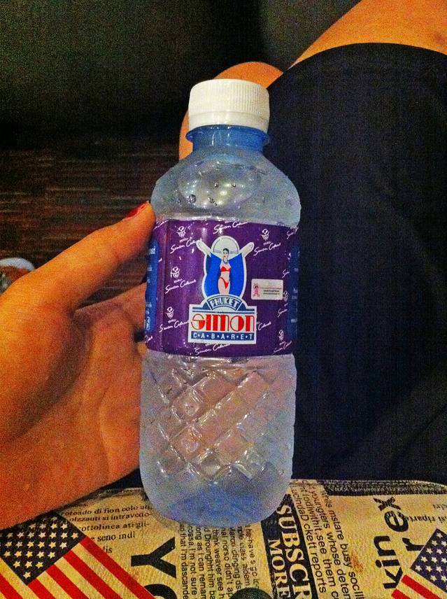 只敢拍了每人免费发放的一瓶矿泉水,上面有人妖秀的logo。