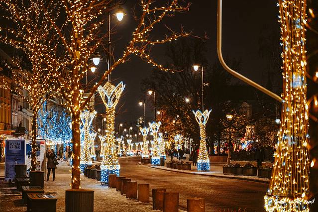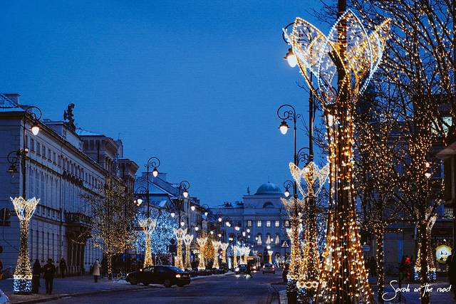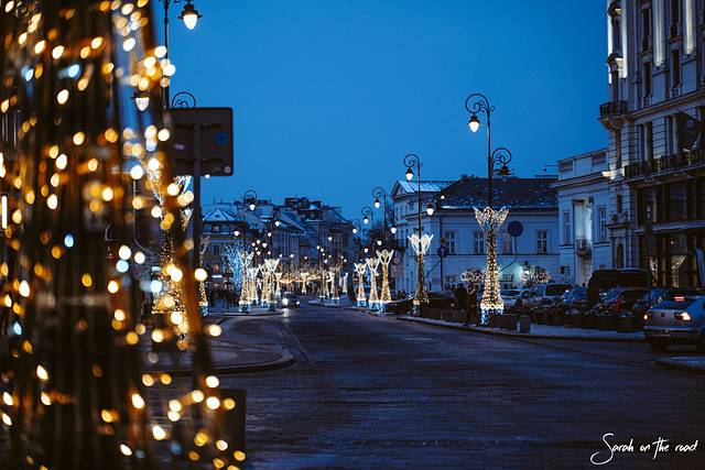 12月来 波兰 是幸运的,每个城市不仅有圣诞集市,大街小巷到处是圣诞装饰,圣诞氛围浓厚而且唯美浪漫,尤其是 华沙 的国王大道。