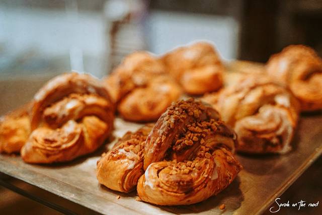 最后放入烤箱烘烤,由于我们做的太糟糕,工作人员还是拿出烤好的羊角包给我们尝,口感顿时,和一般的羊角包完全不一样,馅料的口感也很丰富,第一次吃到罂粟籽的味道,难以形容啊。