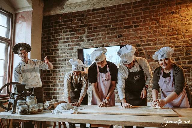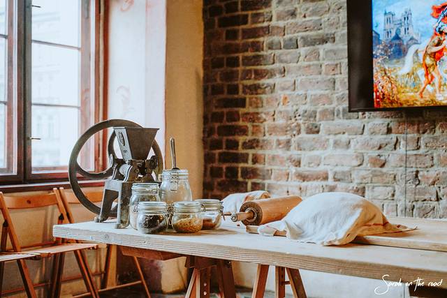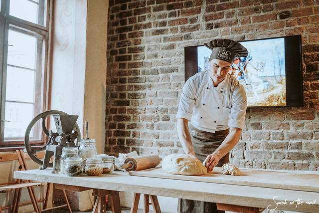 这次我们和当地人一起体验制作圣马丁羊角面包,工作人员非常有趣热情,给我们看了短片介绍。根据记载,圣马丁羊角面包的做法来自教会。当地的神父呼吁大家在圣马丁节这一天把这种羊角面包分给当地的穷人。后来一位糕点师也说服了他的老板,在每年的这一天做很多的羊角面包并且在里面塞入了罂粟籽。没错,是罂粟籽, 波兰 很多蛋糕甜品也会放入罂粟籽。羊角面包穷人们可以免费拿取,但富人需要花钱,传统一代一代流传下来。