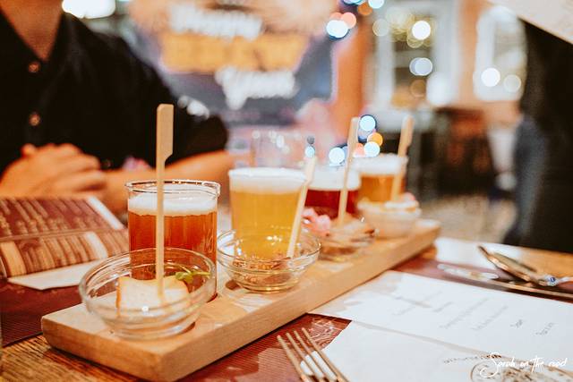 当地人和我们介绍了 波兰 的特色酒,伏特加。如今说起伏特加马上想到 俄罗斯 ,殊不知,伏特加的起源来自 波兰 。 格但斯克 有个特别的酒,金箔酒(Goldwasser),我们在圣诞集市看到,颜值很高,伏特加里真的有金箔,送朋友还挺有新意的。