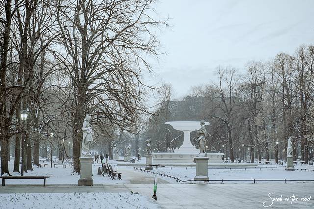 无名烈士墓后方的萨斯基公园冬季被白雪覆盖,非常漂亮,公园有很多雕像和喷泉,一些长凳还别有洞天,按下按钮,余音缭绕,播放的是肖邦的音乐。