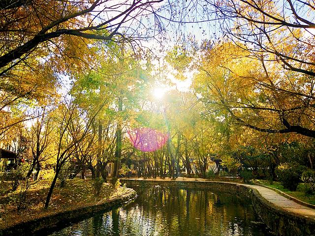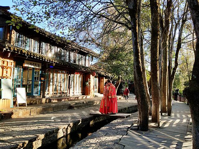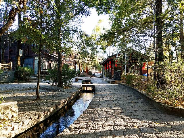 12月份,束河古镇里也是有许多的绿树红花的,不存在草木枯黄,毫无生机的那种感觉。