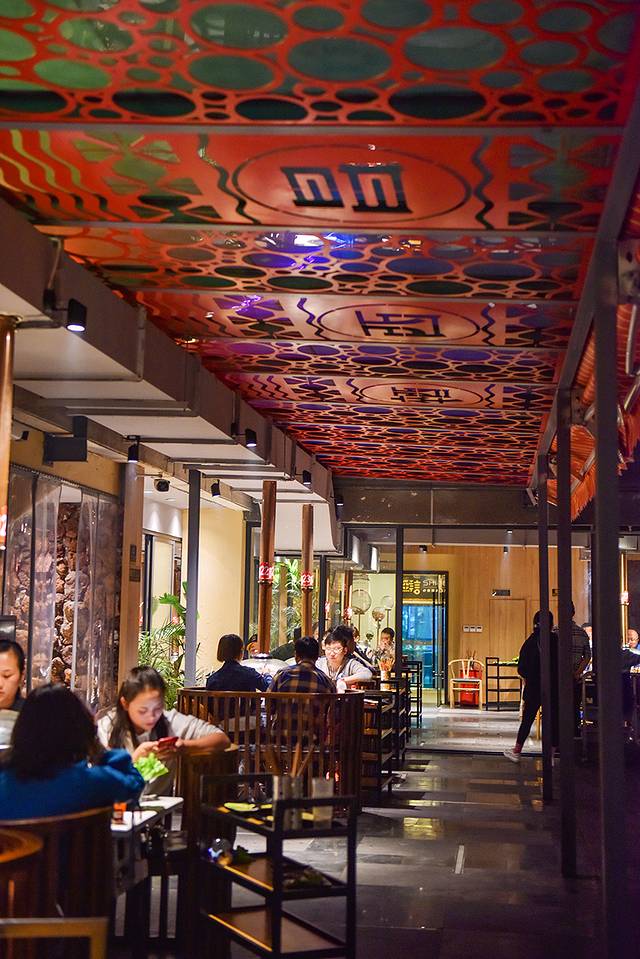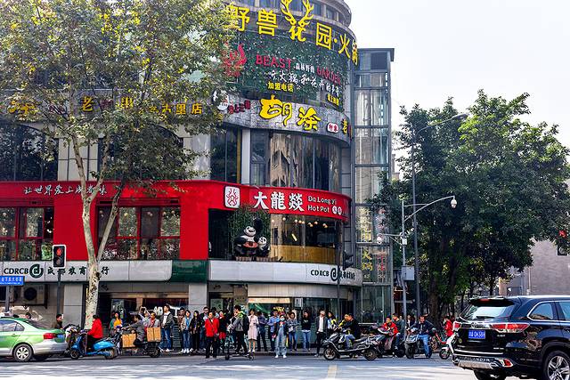 这家店依托太古里,在晶融汇对面,站在南纱帽街和东大街下东大街交汇口向外看,一眼就能看到马路对面大红招牌,爬着只萌熊猫的大龙燚。