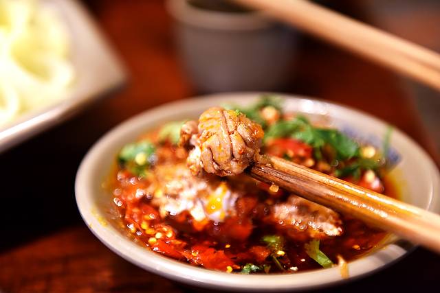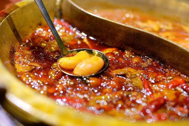 红酒浸牛肉是典型的有创意味道好,牛肉吸足了红酒的香味,入口带点淡淡的酒香,整盘牛肉在火锅的香辣中却多季出了几分妩媚。