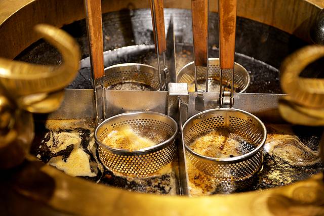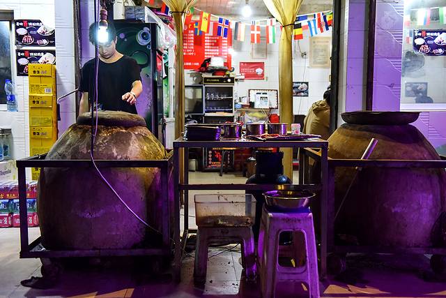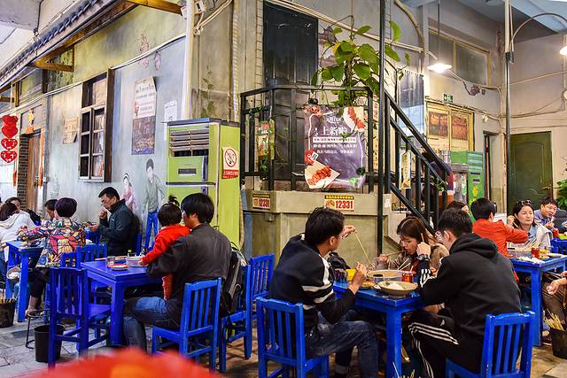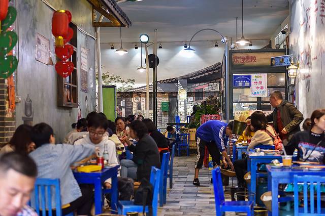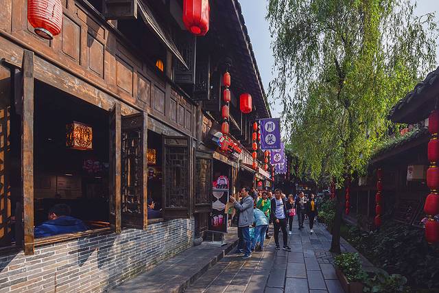 各种美食小店遍布,各种四川本土的特色名小吃,张飞牛肉,肥肠粉,荞麦面,糖油果子,甜水面,黄醪糟,三大炮,钵钵鸡等等。很多都是边做边卖,吃个新鲜的同时还能看个热闹,比方说三大炮,在成都我买过好几次,并不是因为有多好吃,主要是觉得好玩儿。