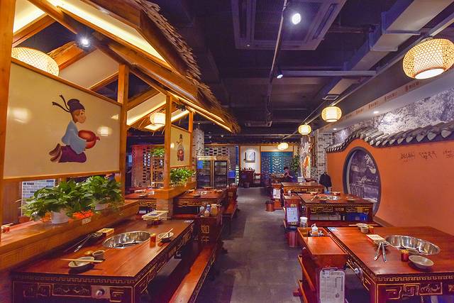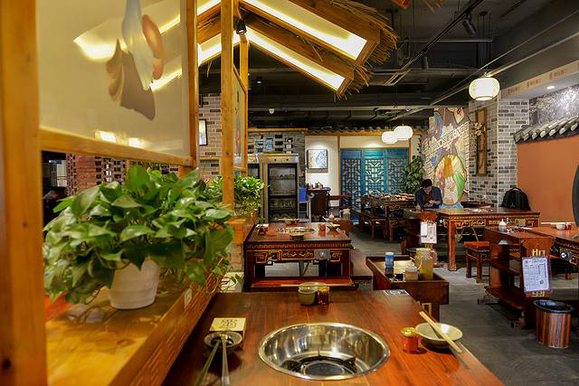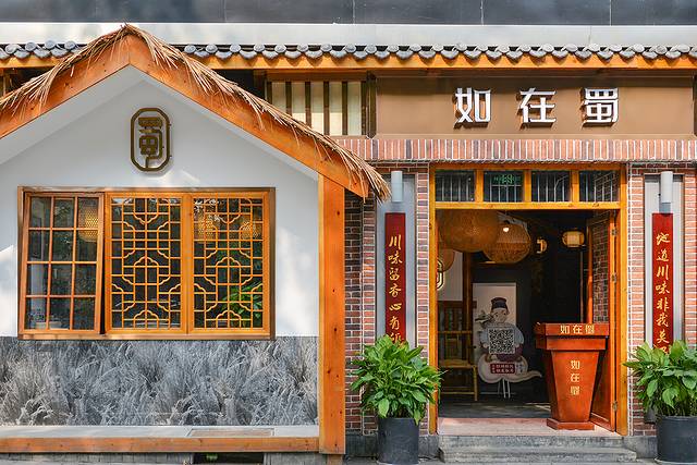 如在蜀出品的是正统的四川老火锅,店面装修也很中式风格。茅屋顶,雕花窗,令牌一样的大“蜀”字都是它家招牌。
