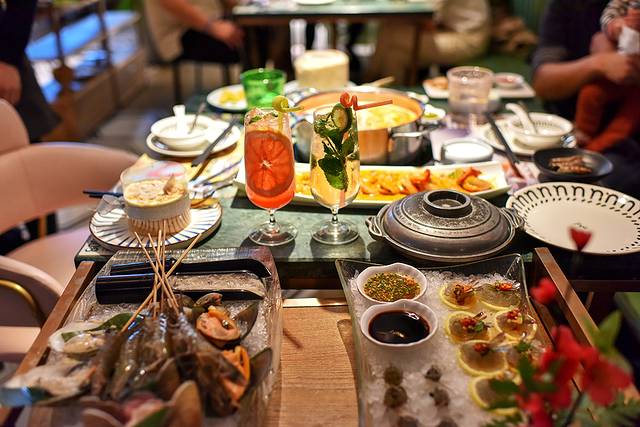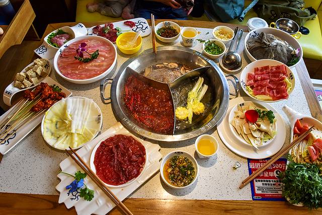 已经错开饭点了,但店里人也还是不少,挑了个靠窗位置落座。环顾四周,真的超爱吃火锅的氛围,入鼻的香味,热火朝天的场景,看得人都心生热烈。