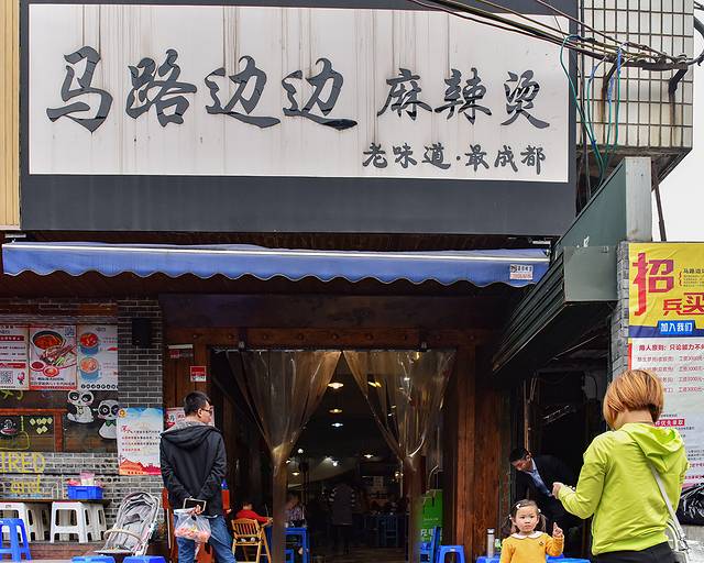 店子门脸不大,招牌也很朴实,简单的白底黑字写着:马路边边麻辣烫几个大字。