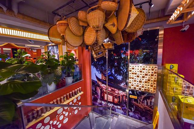 进门,映入眼帘的竹笼灯具,竹制桌椅陈列,无一不在向我们宣告:这里是成都。
