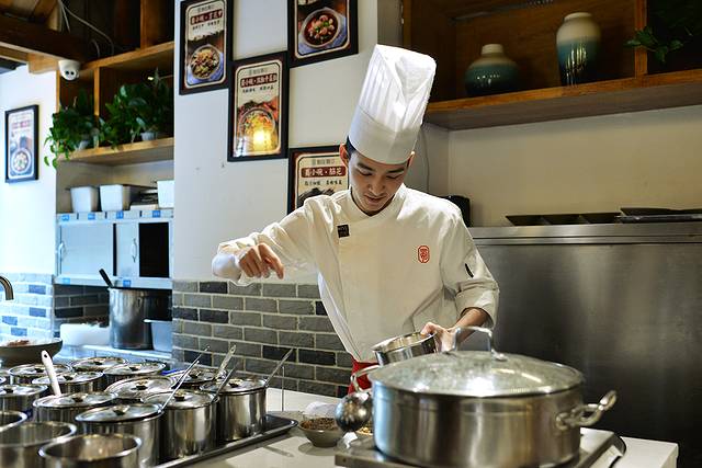 上菜之前,先把厨师小哥哥放了来亮个相,实在是太太太太太帅啦。长得帅,操作也帅,这是在给我们做冒脑花。