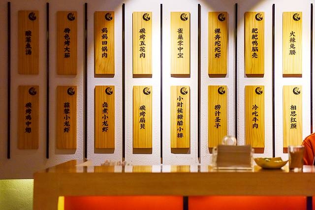 店子里的装修布局都蛮有味道的,竹编的筲箕篮筐,简单的碗盘勺子,凹凸有致的文字墙,每一眼都让人对这家川菜馆多几分好感。