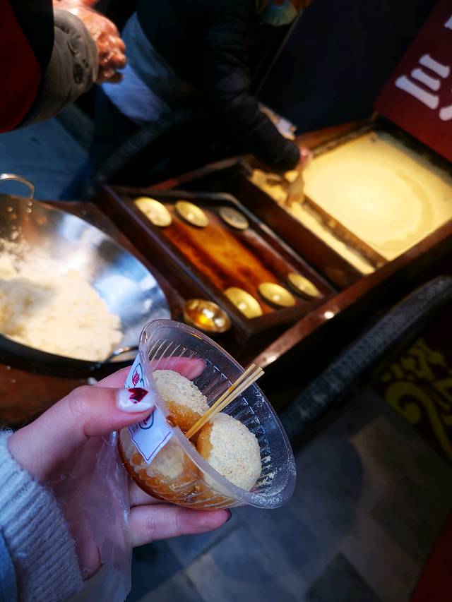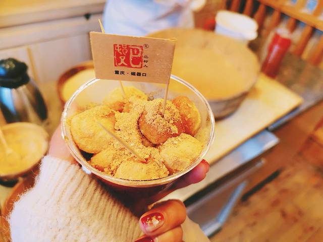 三大炮,喜欢吃红糖糍粑的话不要错过,我觉得蛮好吃的,软糯的糯米糍弹到黄豆粉上拾起最后浇上红糖汁,不要太好吃