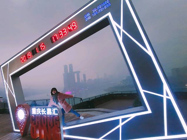 没有去看两江交汇,司机说后面长嘉汇这里有观景台可以观看江景,但是也是因为阴天 所以...到了也没办法,打个卡再走吧🎬😂