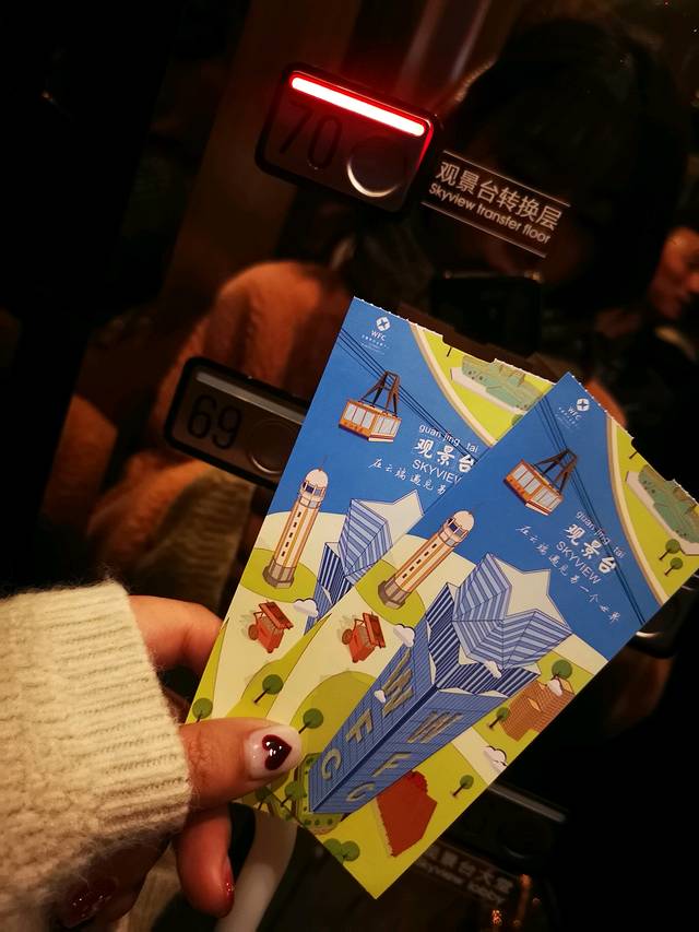 然后先乘坐电梯到达70层