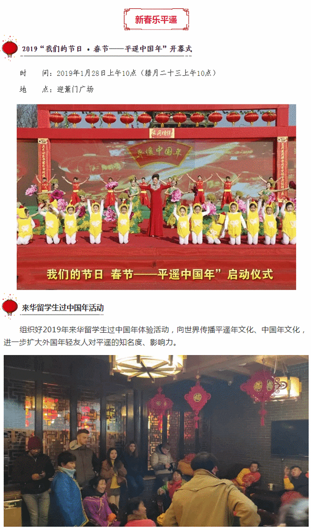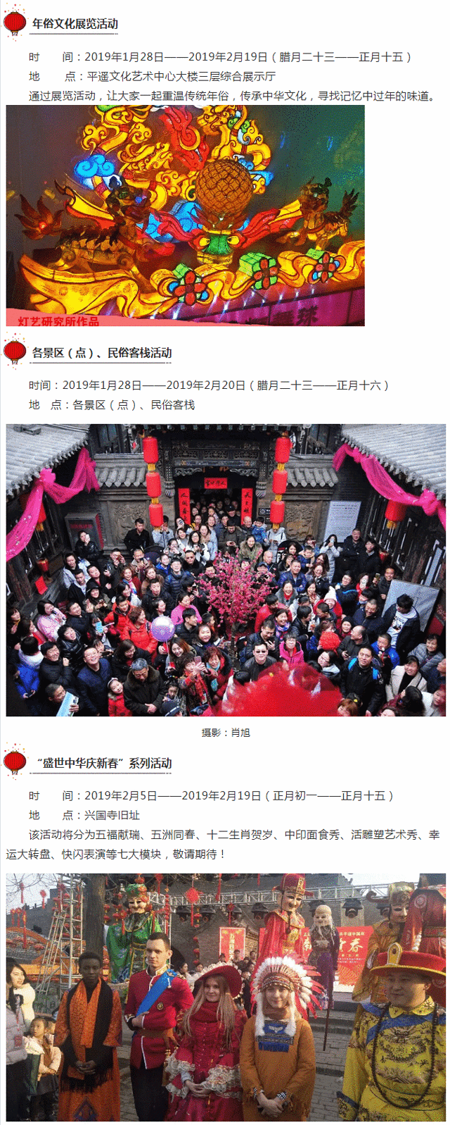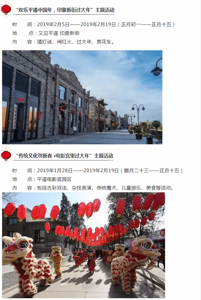2019年平遥中国年活动于1月28日到2月20日,即农历腊月二十三至正月十六在平遥古城举行。最热闹的莫过于正月初一到初六了~