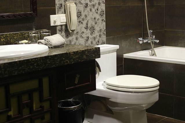 房间很大,很干净,我们被安排在套间房,房间超大,卫生间超大,淋浴和浴缸分区布置在卫生间两端,关键是那张床太舒服啦,酒店还有中西合璧的自助早餐可以吃,味道也不错呢!