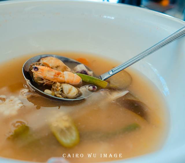 如果喜欢吃酸的得话,这里的海鲜汤特别推荐一下,里面有虾有鱿鱼有贝类和一些蔬菜。