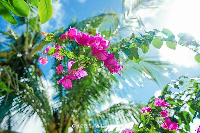 酒店园内属于花园风格,有茂密的植物,开着各种花,姹紫嫣红的很好看。