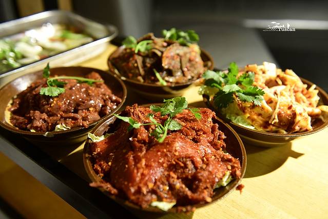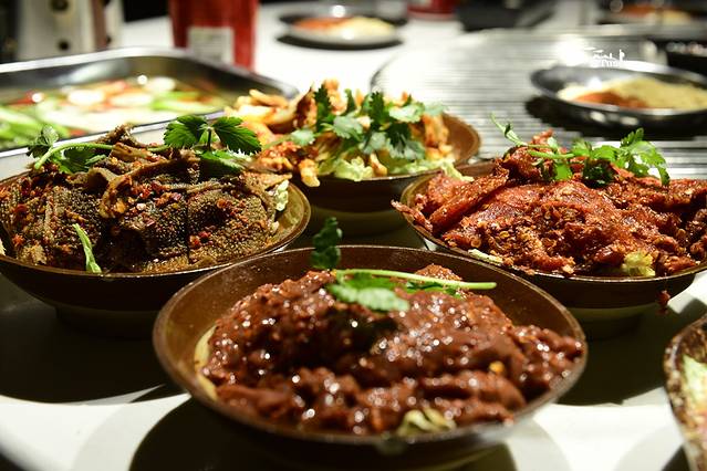 特色的酸梅沾酱很我地方特色,烤脑花和泡椒味和麻辣味,冷吃牛肉麻辣鲜香,入口化渣。