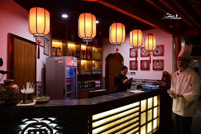 走进店里,扑面而来的川西风格装饰就让人亲切有加,喜气洋洋的红灯笼透出的红火气息不自觉地人间的烟火气息表现得一览无遗。