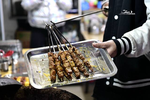 烤出来的肉串鲜嫩多汁,羊肋间肉比其它肉更嫩,肥肉也相对少一些。