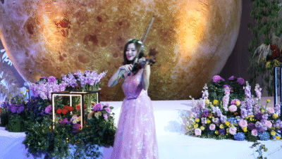 花前月下,来一场小提琴表演,优美的琴声在花间萦绕,悦耳动听,让所有的人都驻足静静聆听,真的是一场心灵上的享受。