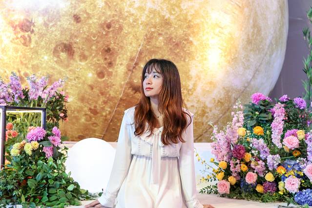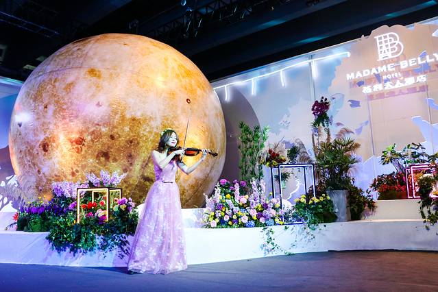 “逸”区域是最适合小仙女逛的地方了,用了大型的花艺搭出来的景,还有超大的月亮,花前月下,浪漫美妙。