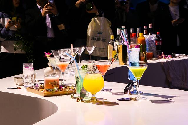 现场还有鸡尾酒调制,一杯杯颜色各异的鸡尾酒都来自于调酒师的巧手,表演完成后现场品尝试饮,第一次尝到东西式结合的鸡尾酒,口感层次丰富却又都完美融合。