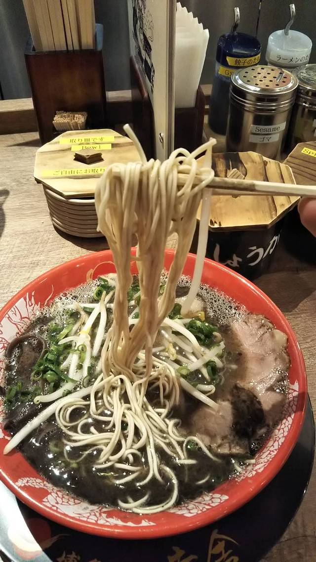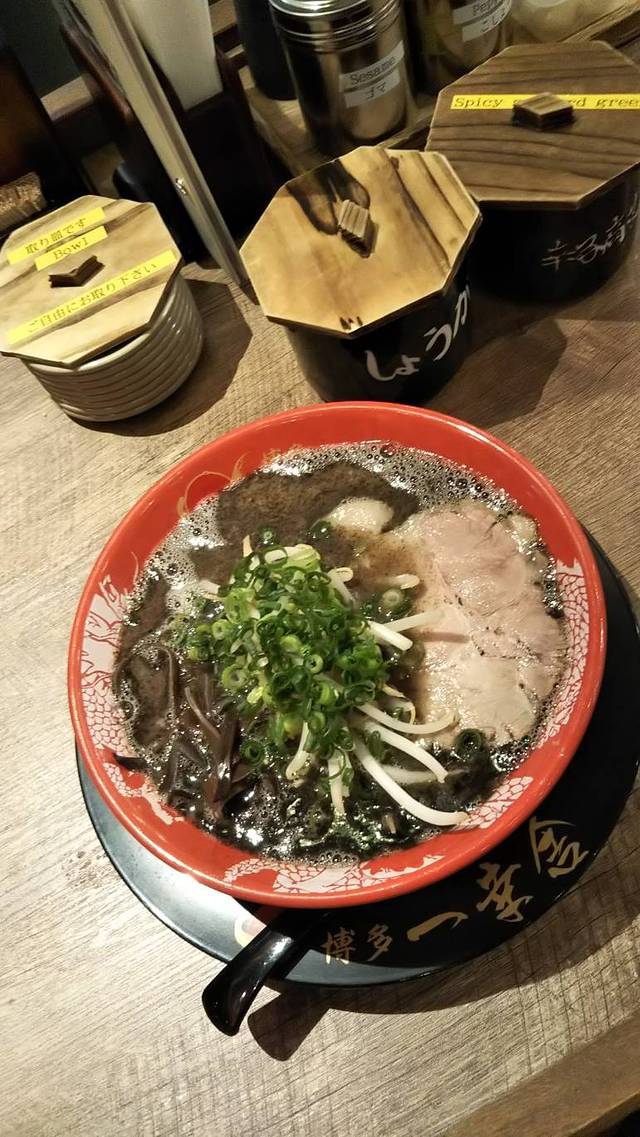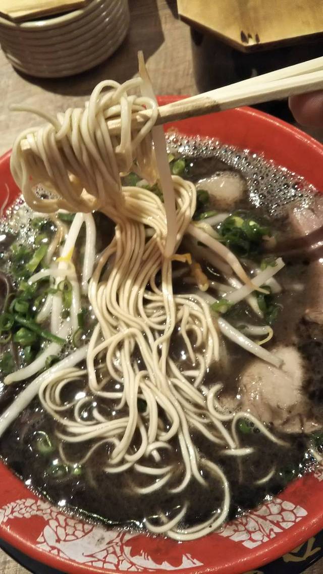 吃起来的话味道比一般的猪骨拉面要少了一些猪的要素,有一种比较圆滑的感觉。这可能也正是他的价值所在。面很精到,在开始做得时候店员会问你面的软硬怎么办。我建议选择软或是一般会比适合黑拉面一些。