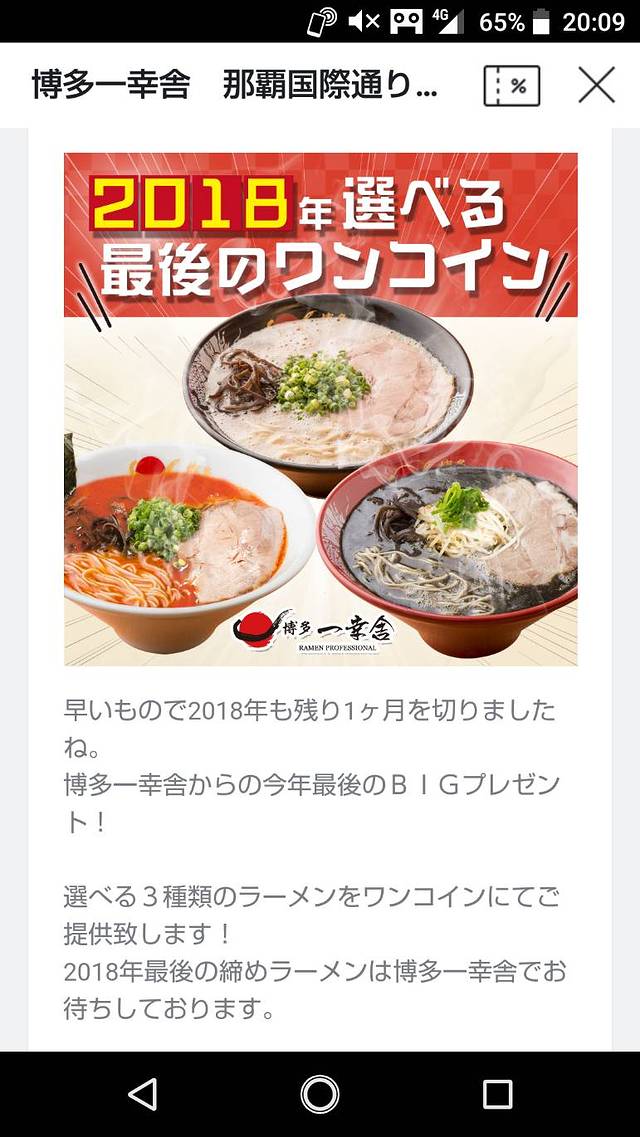 这次我用的是LINE(日本的微信)的优惠券。一碗面用500日元就可以了。(笑)便宜呀。而且可以从3种拉面之中选择。