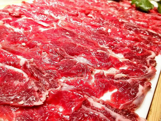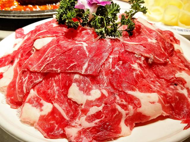 极品雪花肥牛:新鲜的冰镇肥牛,吃火锅必点菜。