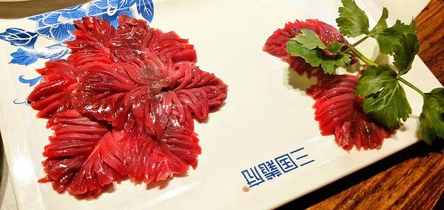 鲜鸭肠、鸭郡花:这两种菜品算是火锅的大众菜了,很新鲜的。